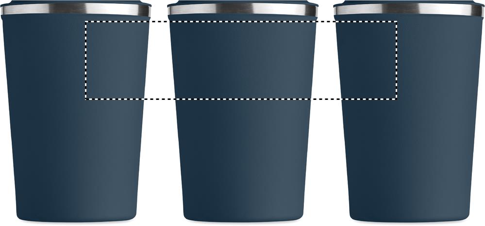 Doppelwandiger Becher aus Edelstahl mit PP-Deckel. Füllmenge: 350 ml.